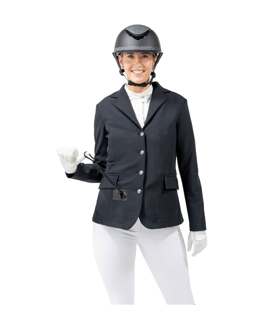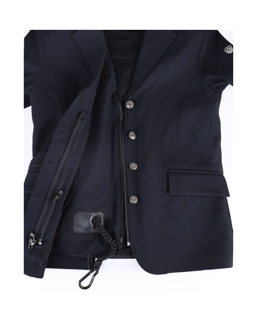 Das Turniersakko selbst ist aus elastischem Material gefertigt, das sich nach einer Airbag-Auslösung wieder in seine ursprüngliche Form zurückzieht. Es wurde so konzipiert, dass es dir uneingeschränkte Bewegungsfreiheit bietet – ob auf dem Turnierplatz oder im Training. Geliefert wird das Sakko einsatzbereit, mit bereits installierter CO₂-Kartusche und Werkzeug.