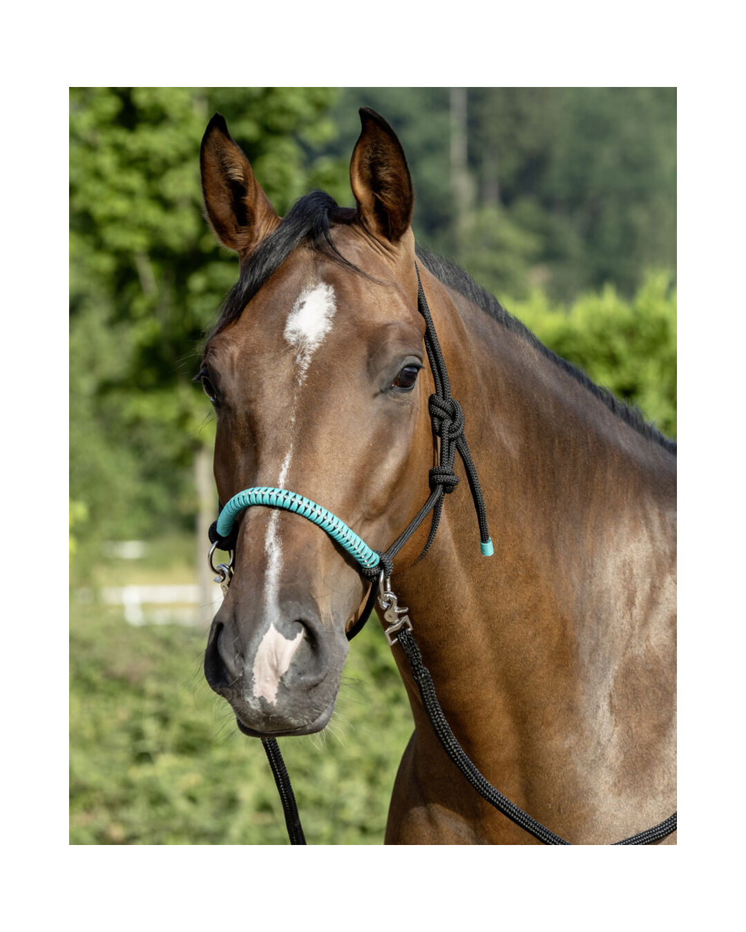 Entdecke das Knotenhalfter-Set mit Zügel von USG, das speziell für die Bodenarbeit und Wanderritte entwickelt wurde.