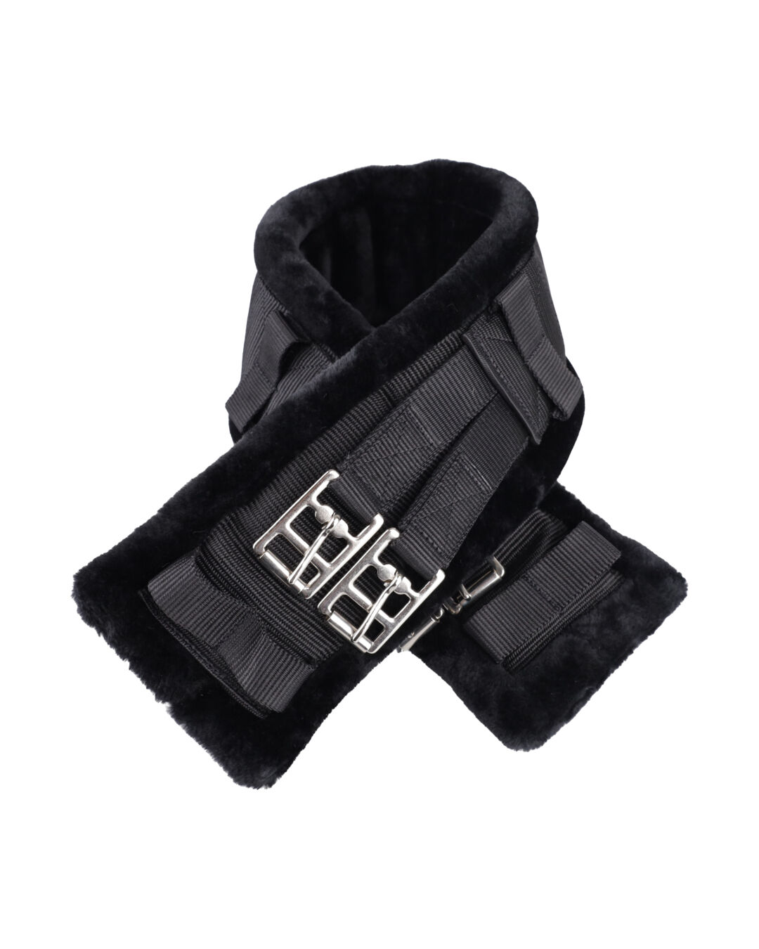 Dieser Gurt ist aus robustem Gurtmaterial gefertigt und mit weichem Fake Fur gepolstert, was ihn ideal für jegliche Reitaktivitäten macht. Der Gurt ist speziell für Pferde konzipiert, die zu Hautirritationen neigen und benötigt keine Elastikeinsätze, was zusätzliche Stabilität bietet.