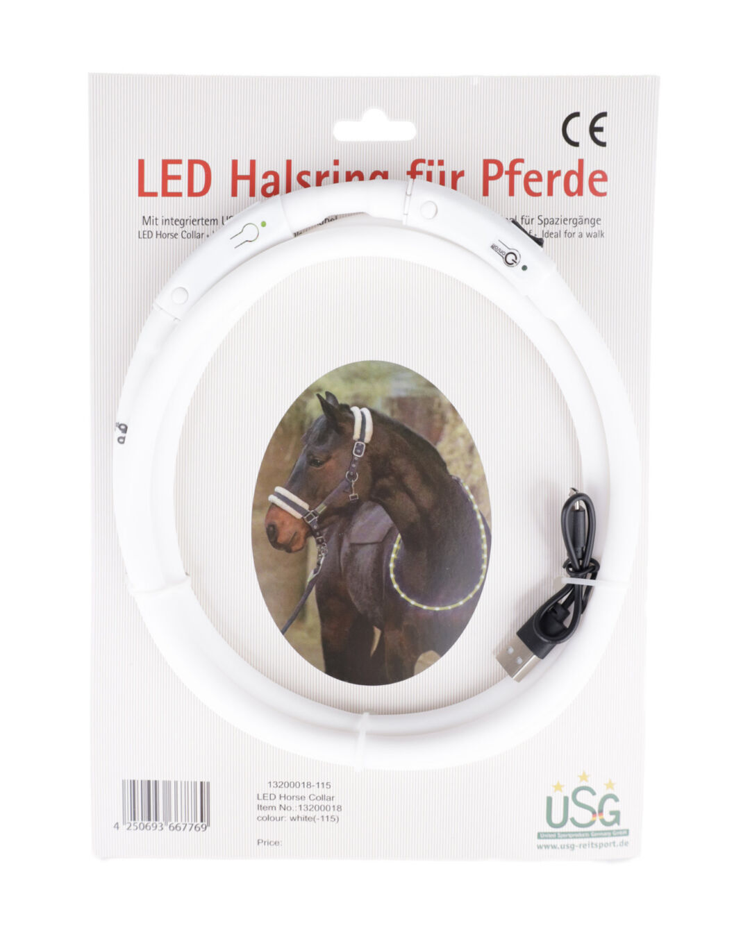 Dieses praktische Accessoire bietet dir und deinem Pferd zusätzliche Sichtbarkeit und damit ein Plus an Sicherheit bei schlechten Lichtverhältnissen. Der integrierte USB-Anschluss macht das Aufladen des Akkus zum Kinderspiel, und das mitgelieferte Ladekabel bedeutet, dass du immer bereit für den nächsten Ausritt bist. Die äußere Schicht des Halsrings ist wetterfest und hält damit problemlos auch einem Spaziergang bei Regen oder Nebel stand.
