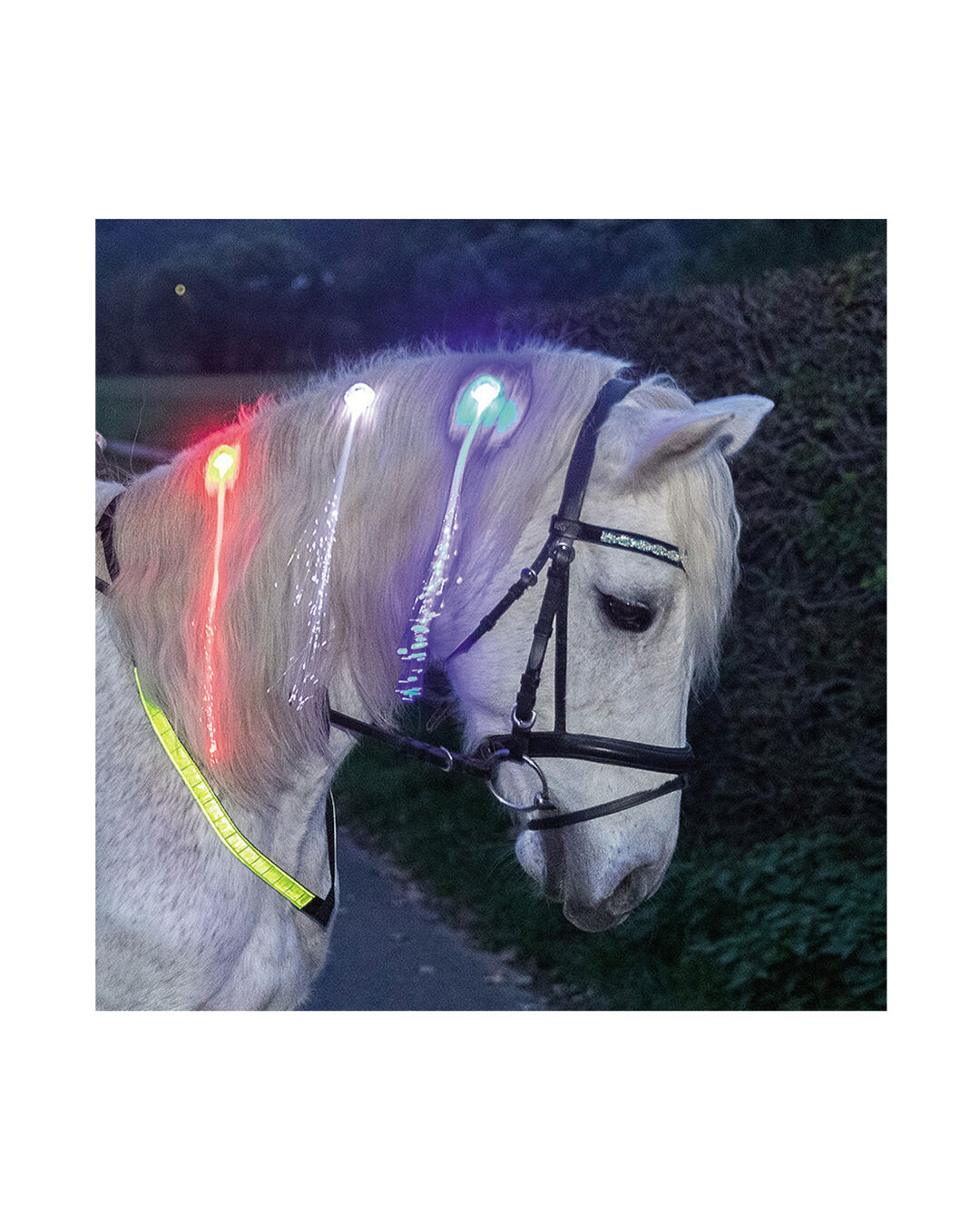 Das Mähnen-Clips LED 3er Set von USG sorgt dafür, dass dein Pferd auch bei Dunkelheit gut sichtbar ist. Die Clips sind einfach an der Mähne zu befestigen und bieten eine helle LED-Beleuchtung in drei verschiedenen Farben – blau, rot und weiß. Besonders in der Dämmerung oder bei Nacht sind diese leuchtenden Clips ein echter Sicherheitsgewinn, sei es auf Ausritten, beim Spaziergang oder auf der Weide. Dank ihrer leichten Handhabung lassen sie sich schnell anbringen und genauso leicht wieder entfernen, ohne das Pferd zu stören.