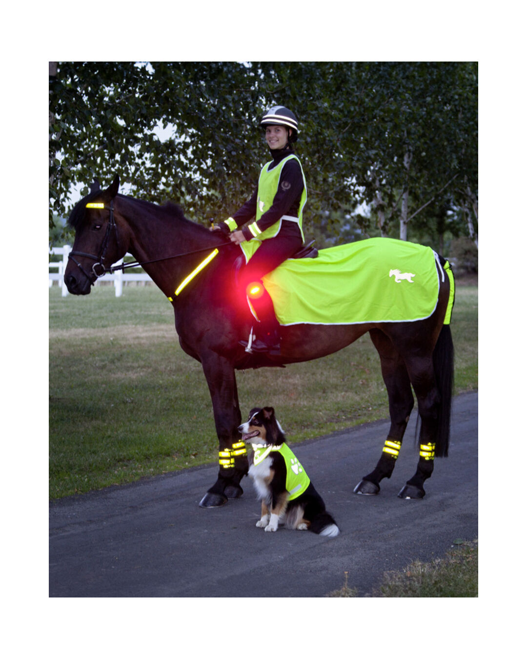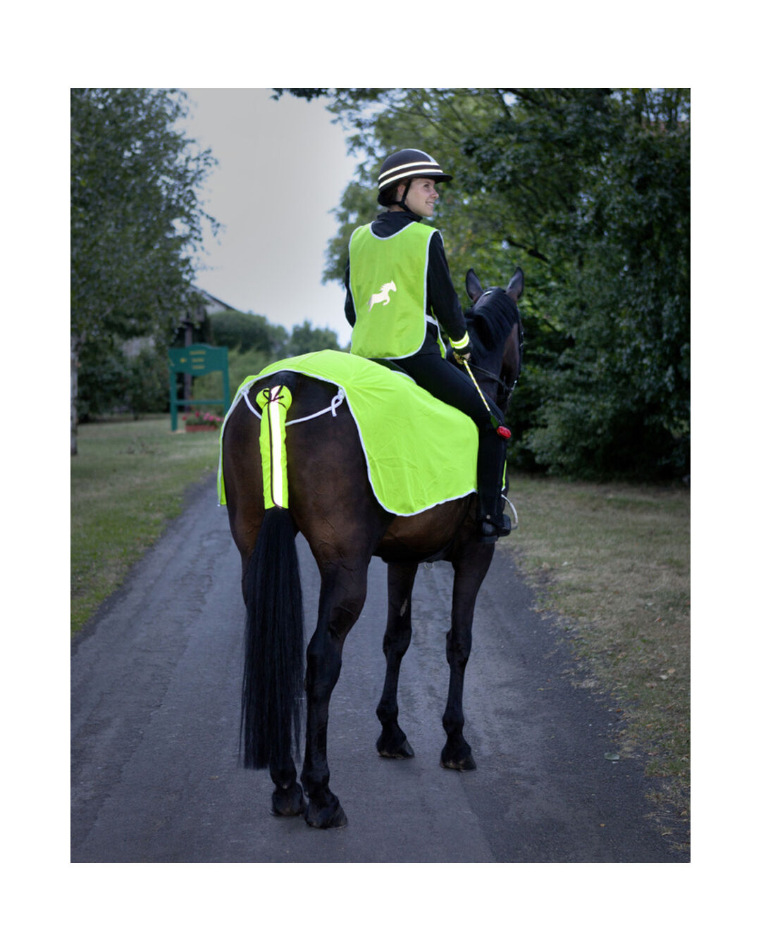 - Hoch sichtbare neon gelbe Farbe und reflektierendes Pferdemotiv für maximale Sicherheit