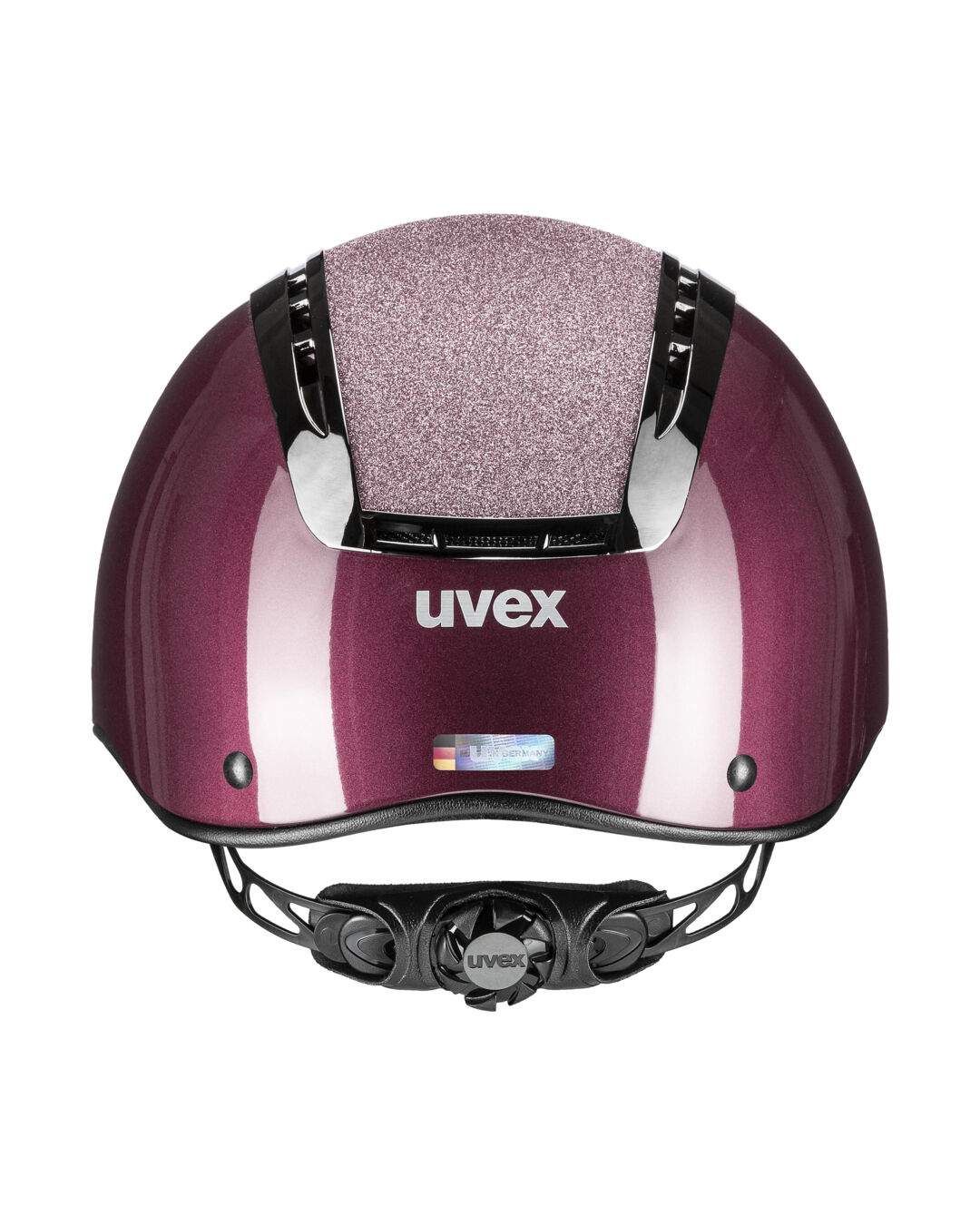 Doch der Look ist nur die halbe Miete: Die stabile Hartschale sorgt außen für Schlagfestigkeit, während die EPS-Innenschale im Inneren zuverlässig Stöße absorbiert. Damit dein Helm auch wirklich wie angegossen sitzt, lässt er sich mit dem uvex 3D IAS System in Höhe und Weite individuell anpassen – auch für Reiterinnen mit Brille. Die hochwertigen Kunstleder-Gurtbandbezüge liegen angenehm an, ohne zu drücken.