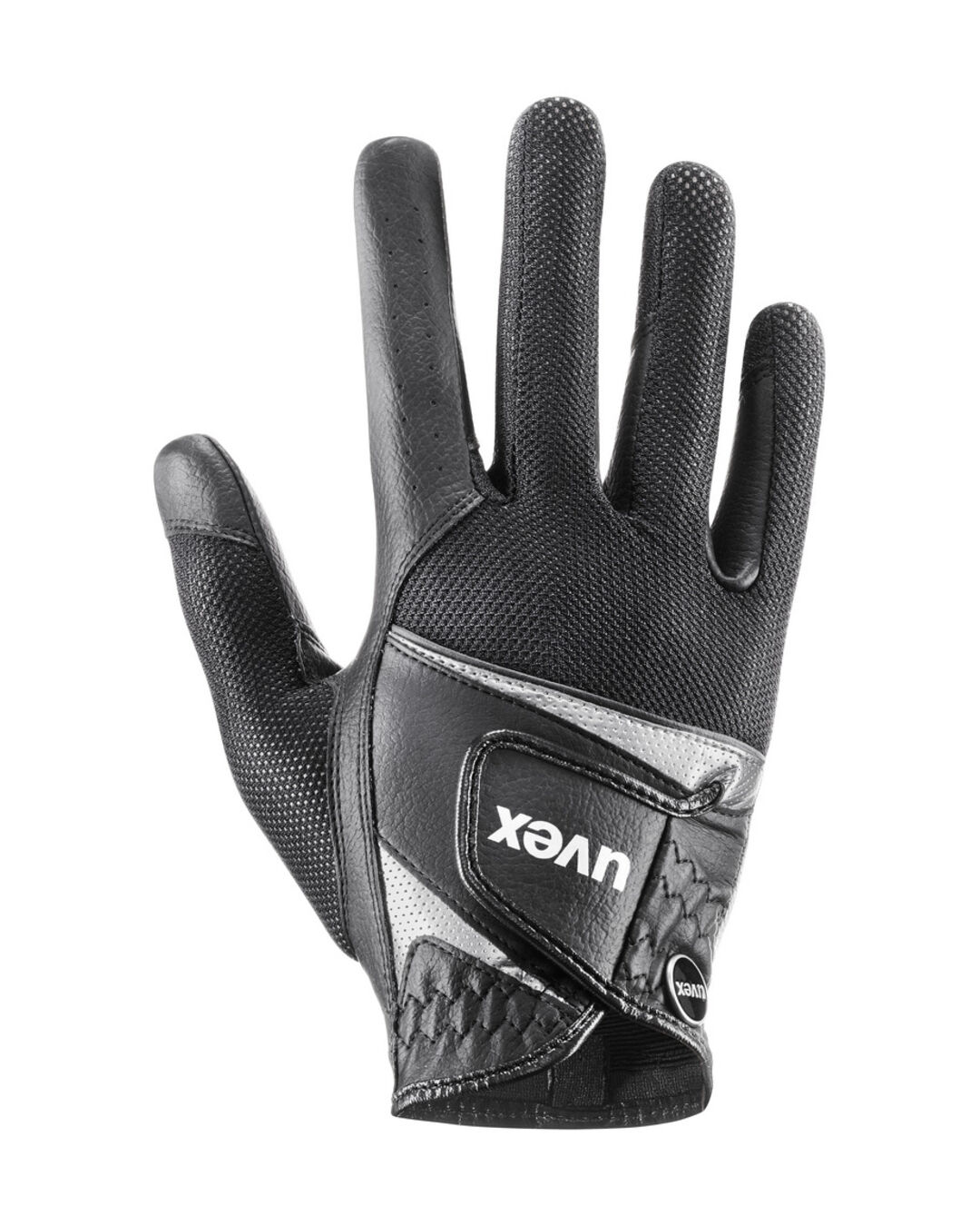 Großflächiger Einsatz von Mesh-Material auf der Oberhand und am Daumen sorgen für beste Belüftung. Feuchtigkeit die entsteht, kann so schnell nach außen transportiert werden. Das hochwertige Polyurethan-Material auf der Innenhand und zwischen den Fingern ist extrem rutsch- und abriebfest, bei gleichzeitig geringer Materialdicke. Das sorgt für besten Grip bei feinem Zügelgefühl. Egal, wie schweißtreibend das Training ist, dieser Reithandschuh behält die Kontrolle. Die Komposition aus hochfunktionalen Materialien lässt gleichzeitig einen einzigartigen Look entstehen: Glänzendes Kunstleder, Polyrethan und Mesh geben dem Handschuh in allen Farbvarianten einen hohen Stylefaktor. Schwarze Lackdetails und eine cleane, sportliche Linienführung machen ihn zur Stilikone. Mit seinem kurzen Schnitt ist der uvex sumair auch bei hohen Temperaturen der ideale Handschuh für eine stylishe Perfomance im Sattel.