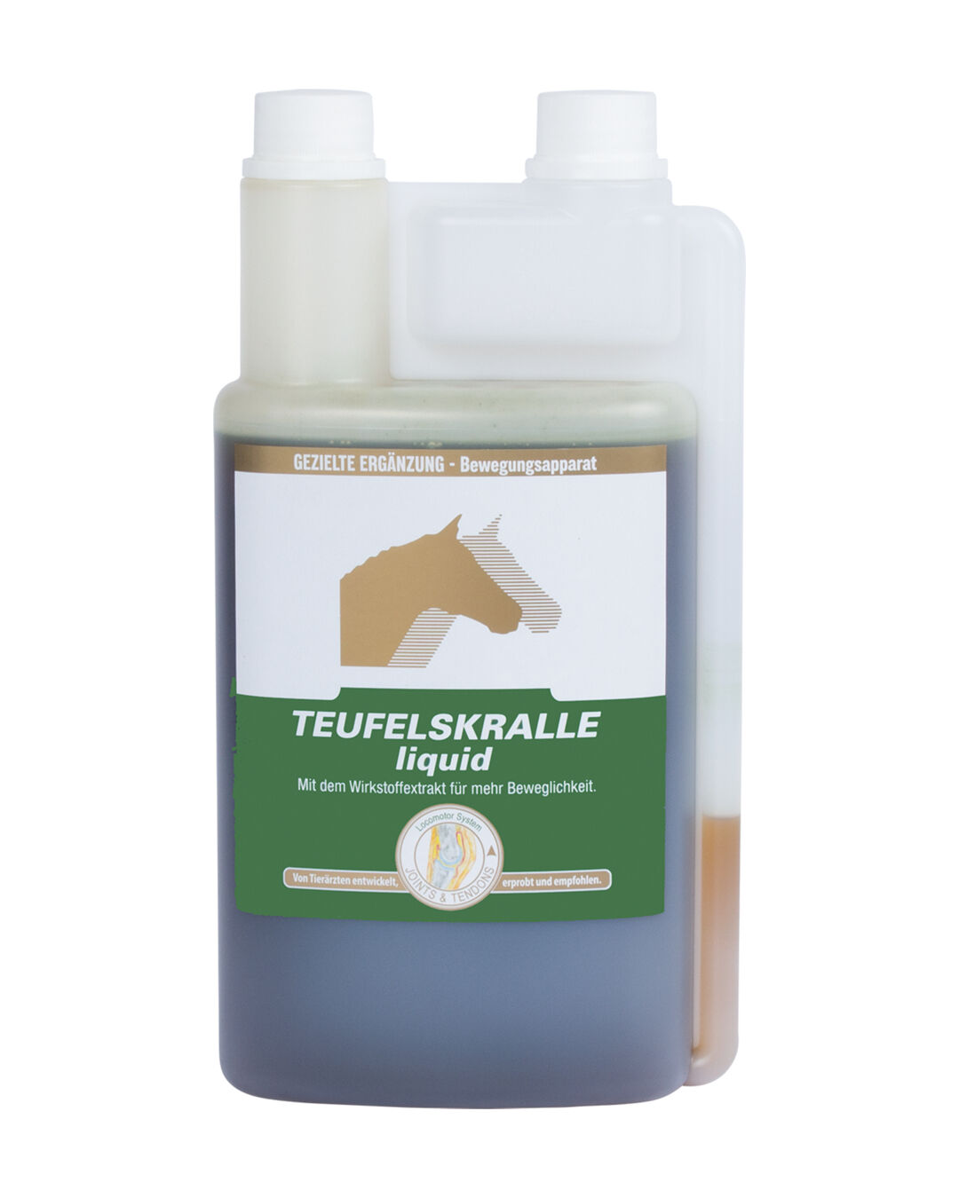 Vetripharm Teufelskralle liquid ist flüssiges Ergänzungsfuttermittel für Pferde mit dem Wirkstoffextrakt für mehr Beweglichkeit. Die Vetripharm Teufelskrallenwurzel (Radix Harpagophyti) aus dem sonnenreichen südlichen Afrika enthält natürliche Wirkstoffe, die den Stoffwechsel in den Gelenken unterstützen und somit die Geschmeidigkeit des Bewegungsapparats fördern. Außerdem enthält die Teufelskrallenwurzel natürliche Wirkstoffe, die den Stoffwechsel in den Gelenken unterstützen und somit die Geschmeidigkeit des Bewegungsapparats födern, auch kann Teufelskralle eine Senkung des Prostaglandinspiegels bewirken, welcher bei Entzündungen und Schmerzen im Gelenk eine entscheidende Rolle.