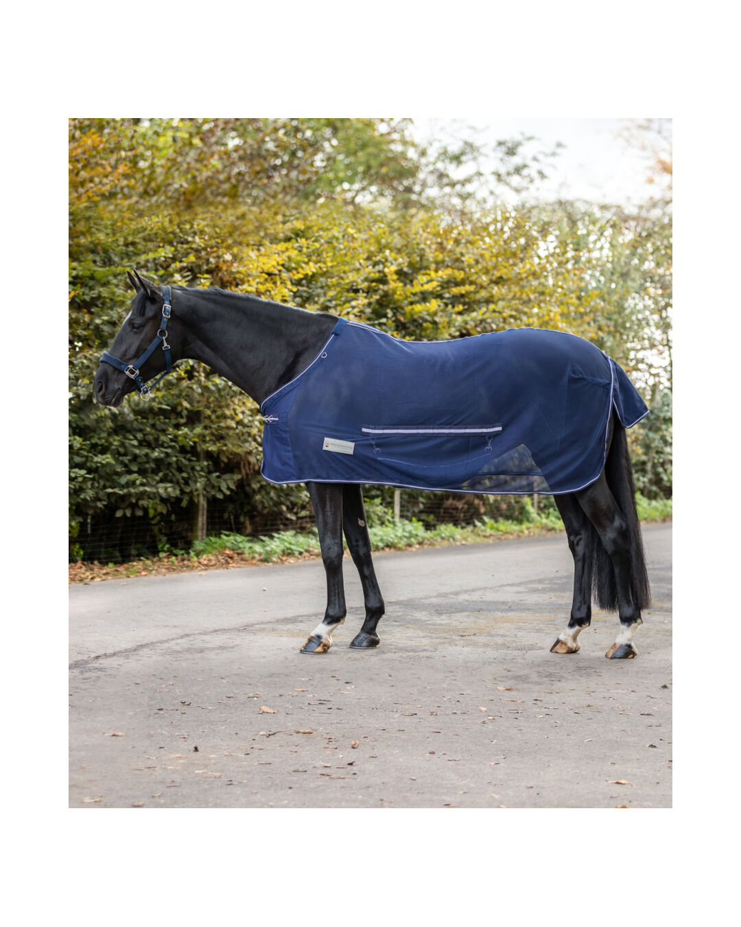 Diese speziell konzipierte Fliegendecke ist aus besonders luftdurchlässigem Meshgewebe gefertigt, das optimalen Luftstrom gewährleistet und gleichzeitig effektiv vor Insektenstichen schützt. Ein herausragendes Merkmal dieser Decke ist der abnehmbare Bauchlatz, der zusätzlichen Schutz in besonders empfindlichen Bereichen bietet. Dieses Feature ist besonders wertvoll, da es hilft, das Pferd rundum vor störenden und potenziell gefährlichen Insekten zu schützen. Der Schweiflatz bietet zusätzlichen Schutz und hält die Insekten auch vom empfindlichen Schweifbereich fern.