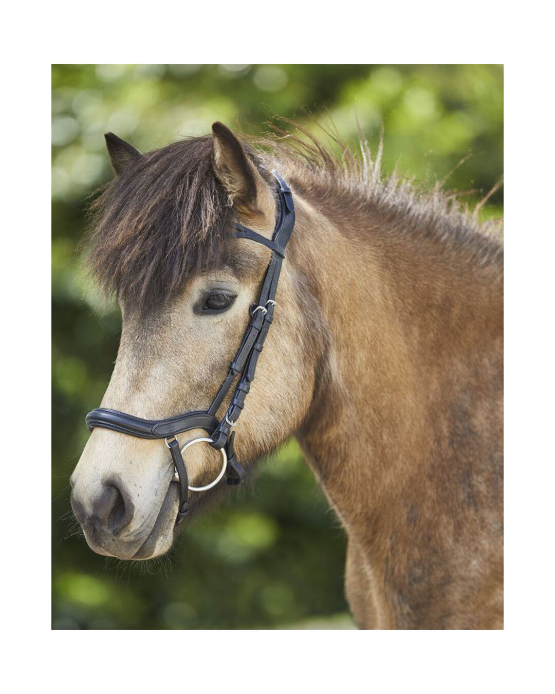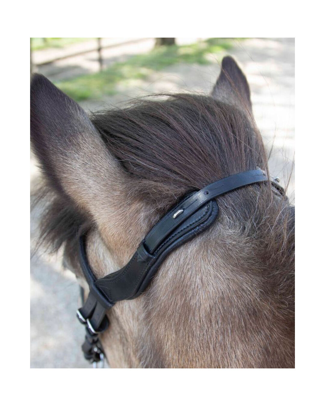 Diese Trense zeichnet sich durch ihr geteiltes Genickstück aus, das den Druck auf das Nackenband deines Isländers reduziert und so für mehr Wohlbefinden sorgt. Die anatomische Gestaltung des Reithalfters gewährleistet mehr Freiheit im Bereich des Jochbeins und des Mauls. Sowohl der Nasenriemen als auch das Genickstück sind weich gepolstert, um maximalen Komfort zu bieten.