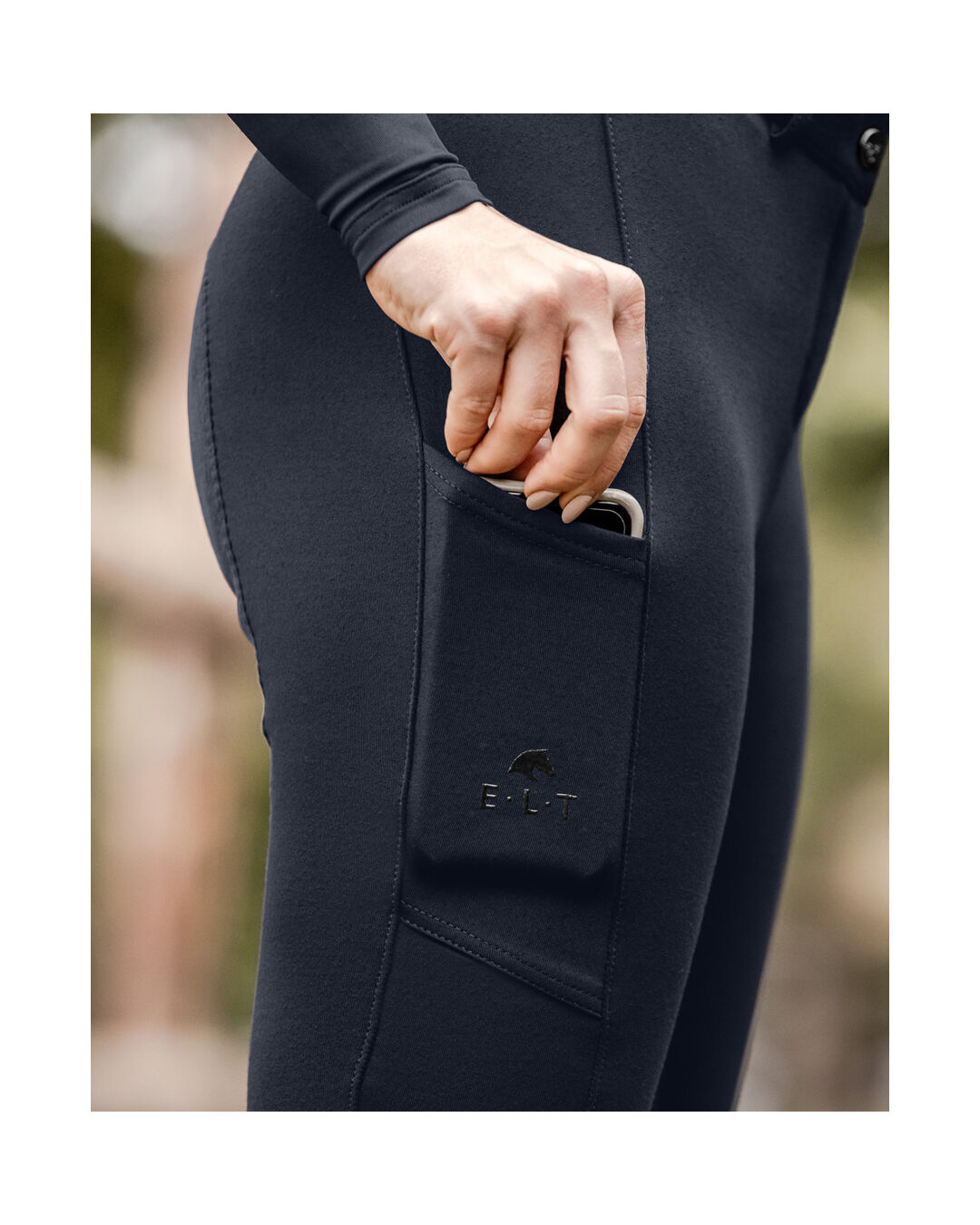 Mit Gürtelschlaufen und einem hochwertigen YKK® Frontreißverschluss bietet diese Reithose zusätzlichen Komfort und Langlebigkeit. Die Handy-Einschubtasche mit E·L·T Logo-Silikonprint hält dein Smartphone sicher und griffbereit. Ein weiteres E·L·T Logo-Silikonprint-Detail an der Rückseite rundet das Design stilvoll ab.