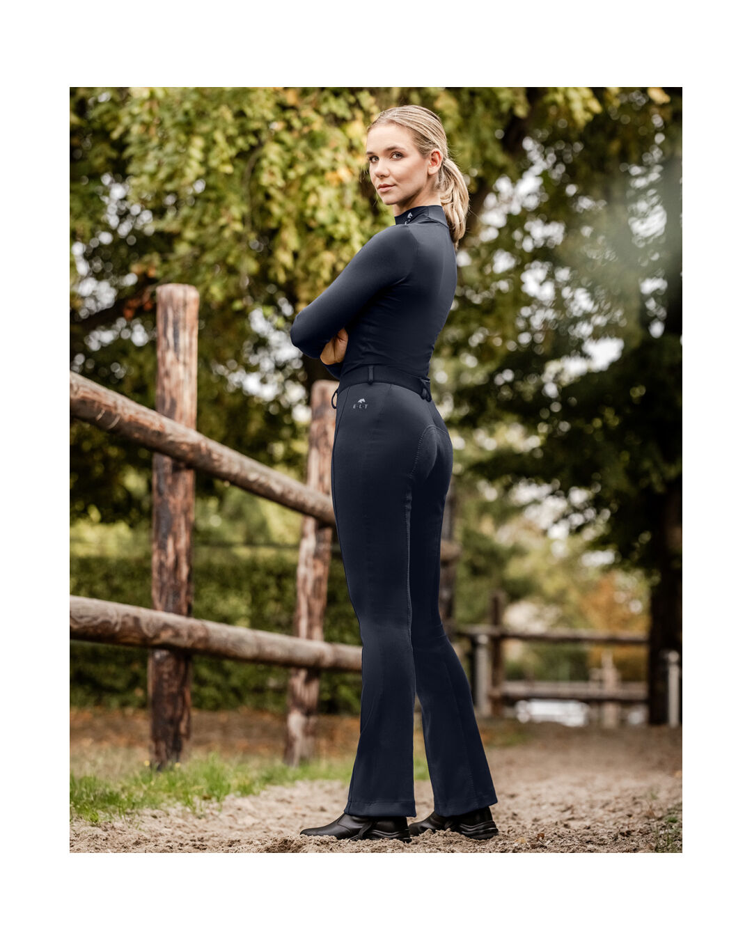 Aus einem bi-elastischen Materialmix mit Naturfaser-Anteil gefertigt, bietet sie dir optimale Bewegungsfreiheit und Atmungsaktivität für jeden Ritt. Der Kunstleder-Vollbesatz sorgt für den nötigen Halt im Sattel, während der ausgestellte Beinabschluss ideal für den Jodhpur-Stil geeignet ist.
