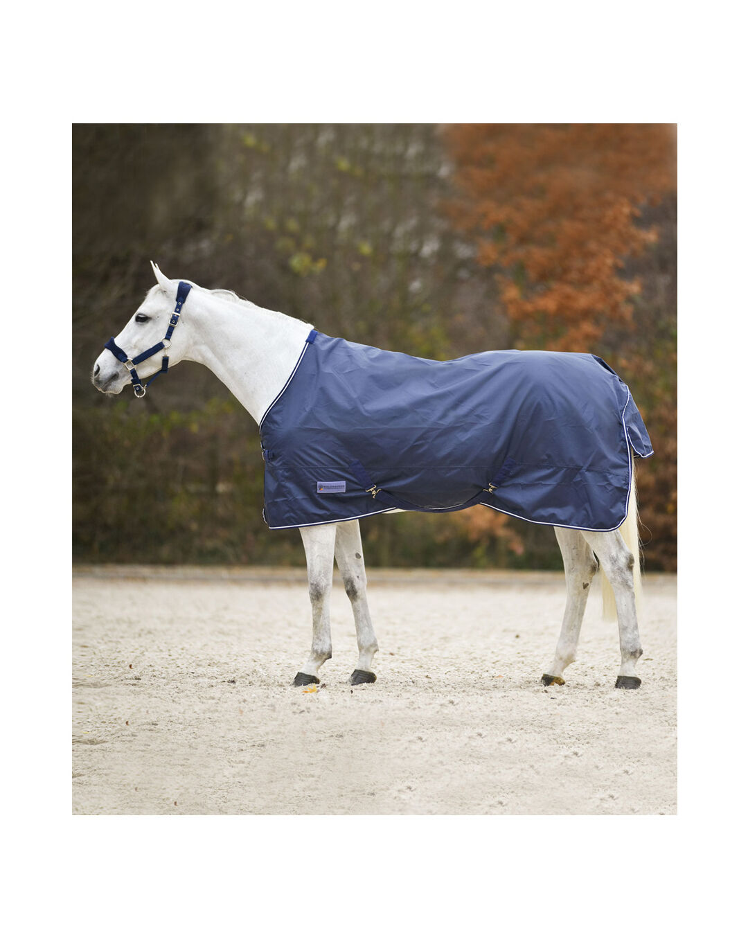 Die Outdoordecke Economic 0 g von Waldhausen ist eine leichte, wasserdichte Regendecke, die deinem Pferd zuverlässigen Schutz vor Nässe bietet, ohne zusätzliches Gewicht durch Füllmaterial.