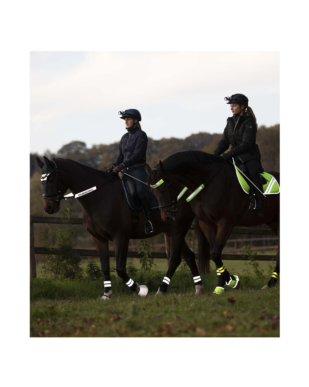 Das Set besteht aus drei stark reflektierenden Bezügen mit auffälligen Silber-Leuchtstreifen, die einfach an Trensenzaum und Zügel befestigt werden. Ob bei Ausritten in der Dämmerung, bei Nebel oder in der Nacht – mit diesem Set kannst du sicher sein, dass andere Verkehrsteilnehmer euch schon von Weitem wahrnehmen.