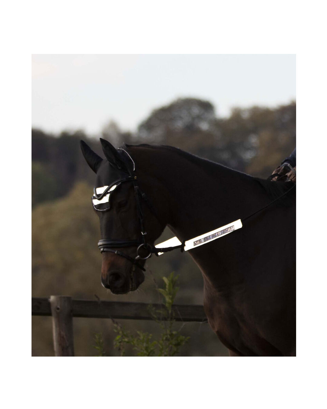 Das Set besteht aus drei stark reflektierenden Bezügen mit auffälligen Silber-Leuchtstreifen, die einfach an Trensenzaum und Zügel befestigt werden. Ob bei Ausritten in der Dämmerung, bei Nebel oder in der Nacht – mit diesem Set kannst du sicher sein, dass andere Verkehrsteilnehmer euch schon von Weitem wahrnehmen.