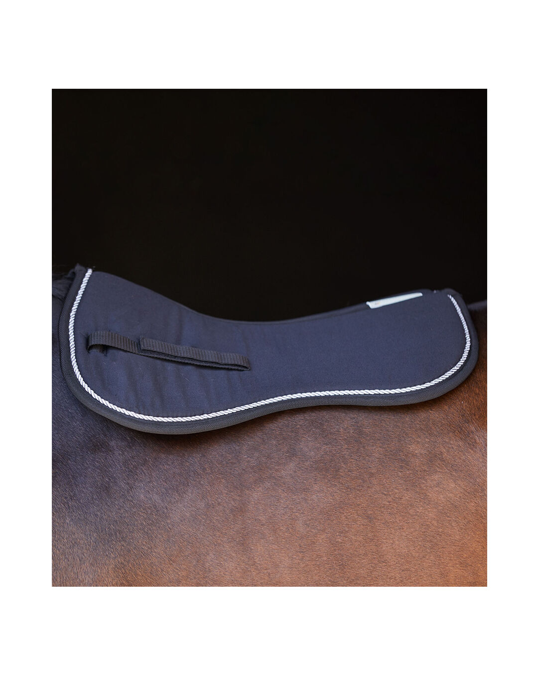 Die schnelle Lösung nach der Winterpause. Gut geeignet zum Auftrainieren des Pferdes. Wirkt stoßdämpfend und sitz gut. Bleibt korrekt liegen bei richtiger Einstellung. Baut wenig auf was mir persönlich gefällt. Dieses Pad passt sich durch Körperwärme an und gibt nach. So soll es ja sein. Deswegen Sattelgurt kurz vor dem Aufsteigen, mit Reitergewicht und nochmal während des Reitens kontrollieren. Dann ist alles bestens.