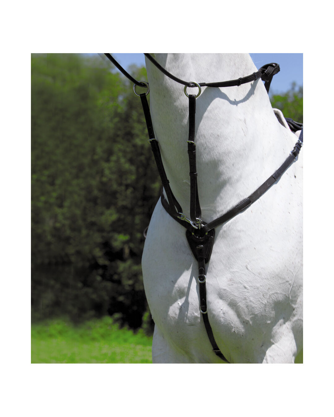 Das Vorderzeug X-Line von Waldhausen besteht aus einem hochwertigen leder. Das Vorderzeug ist mit Edelstahlschnallen, Elastik-Einsatz am Halsteil und abnehmbaren Martingalgabeln versehen.