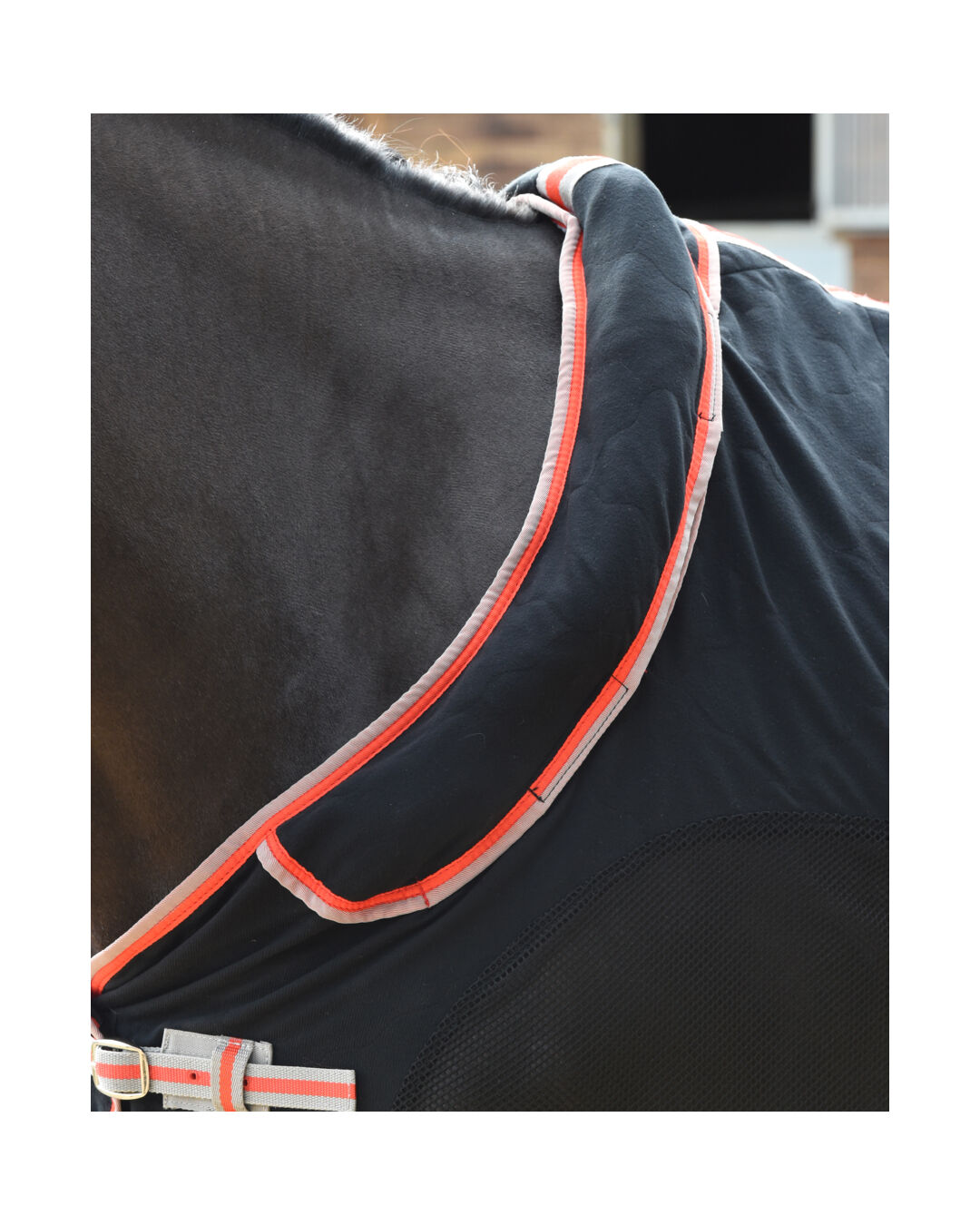 Der Boafleece-Widerristschoner, ein einzelner, verstellbarer Brustschnallenverschluss, ein einzelner, verdeckter Bauchgurt und eine Schweifkordel runden die durchdachte Ausstattung ab.