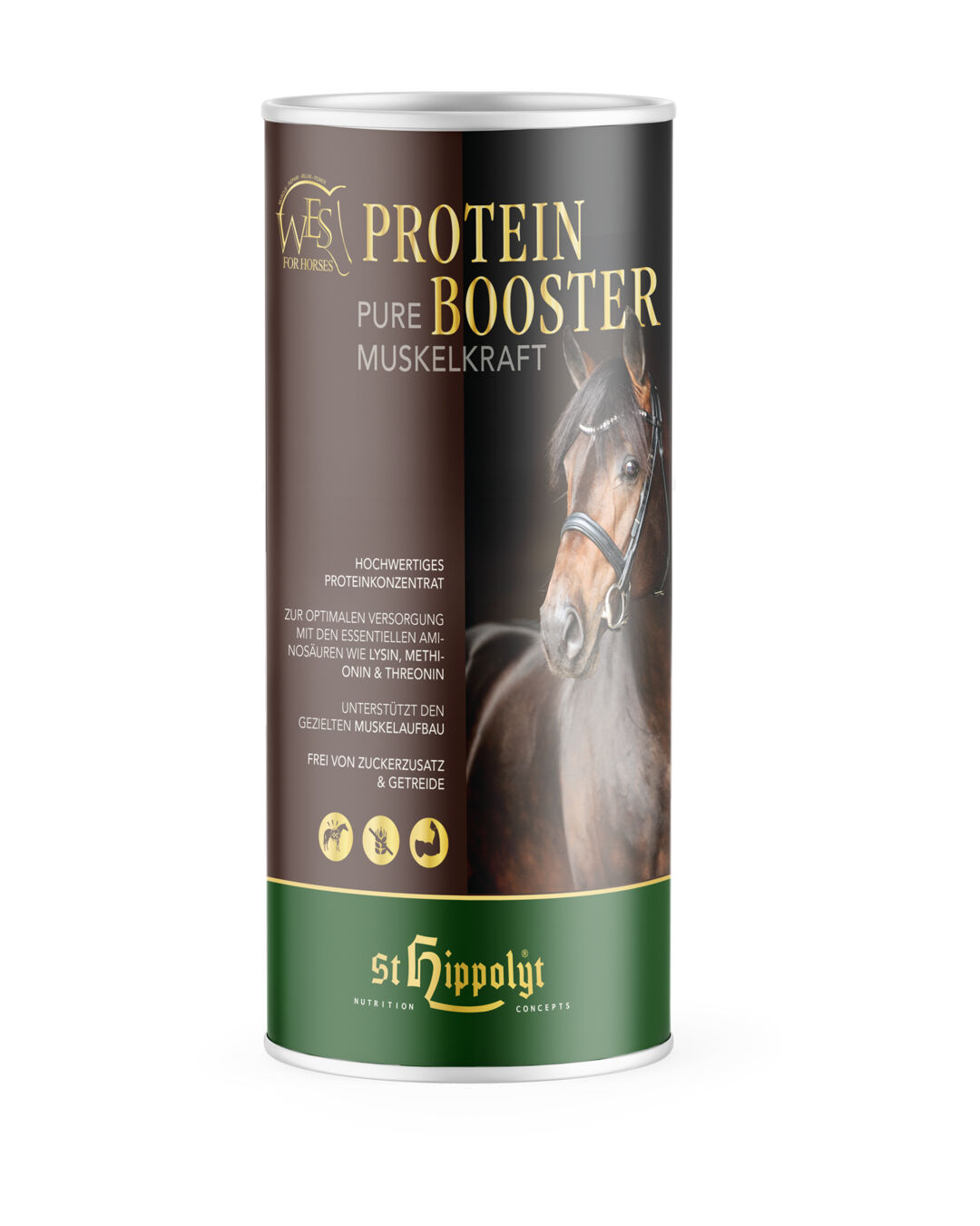 Der Protein Booster von WES ist dein Spezialist für gezielten Muskelaufbau und Muskelerhalt – egal ob bei leistungsstarken Sportpferden oder ambitionierten Freizeitpartnern. Denn eine kräftige, gut versorgte Muskulatur ist die Basis für Leistungsfähigkeit, Arbeitseifer und Rittigkeit.