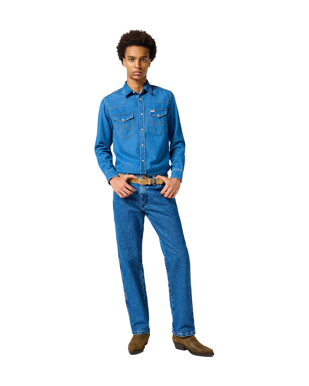 Charakteristische Wrangler-Details wie fünf Taschen, die ikonische „W“-Naht, sieben Gürtelschlaufen und flache Nieten runden den authentischen Look ab. Der klassische Neolith-Lederaufnäher setzt das traditionsreiche Markenfinish.