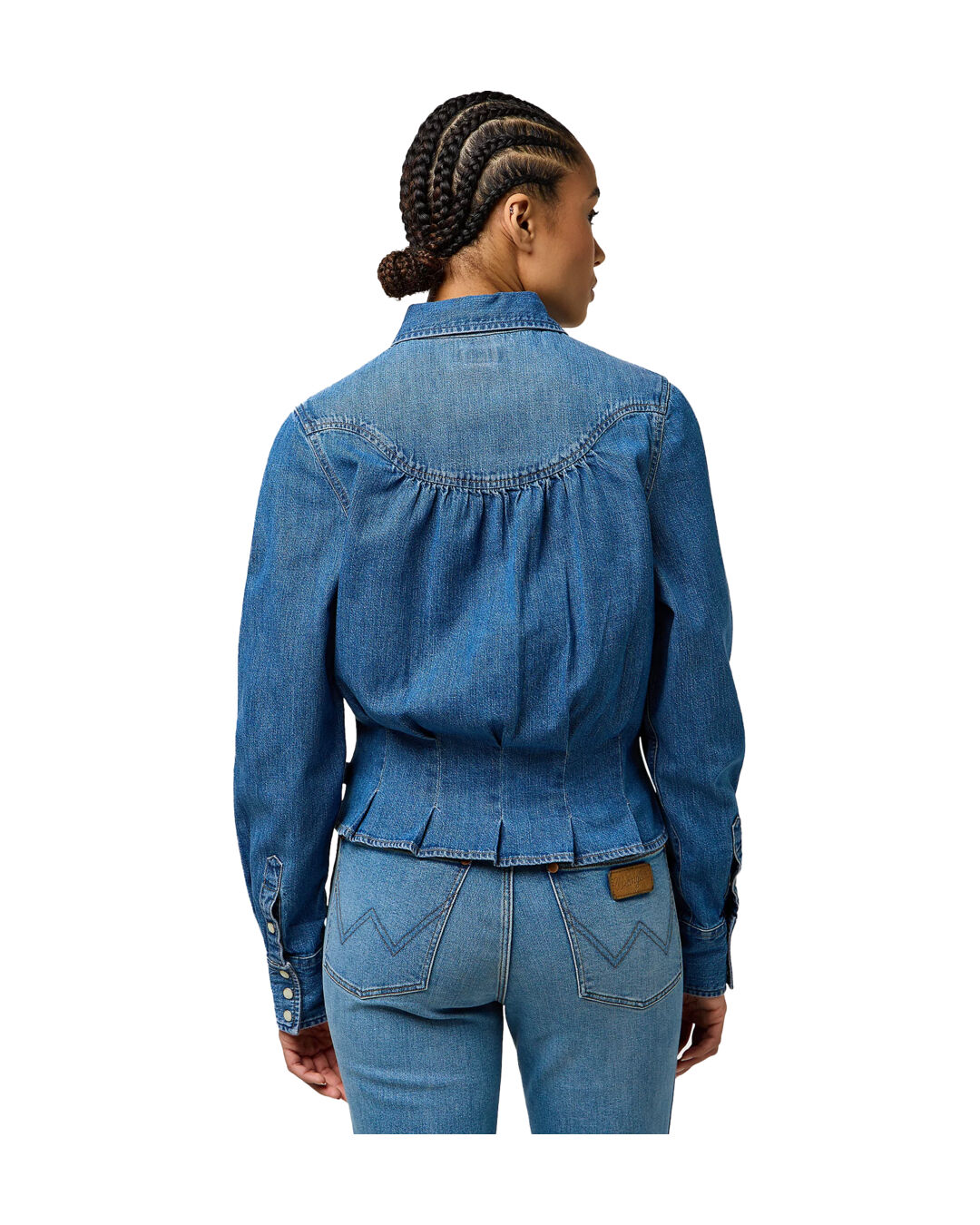 Das Peplum Hemd von Wrangler bringt feminine Eleganz und Western-Charme in Einklang – perfekt für Reiterinnen und modebewusste Freizeitlooks.